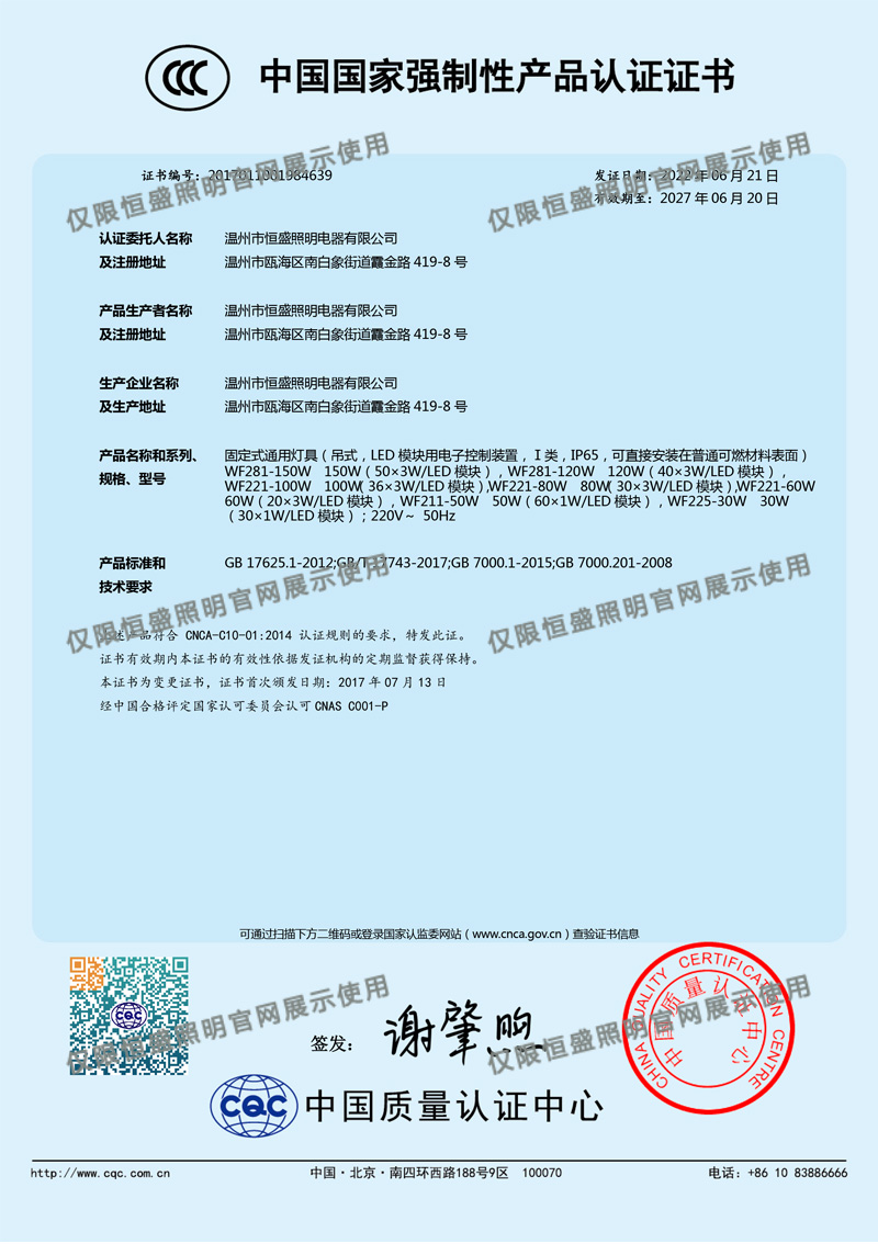 近日,从“中国质量认证中心”传来喜讯,我司产品顺利通过国家强制性产品CCC测试和认证,并获得了“中国质量认证中心”颁发的《中国国家强制性产品认证证书》。