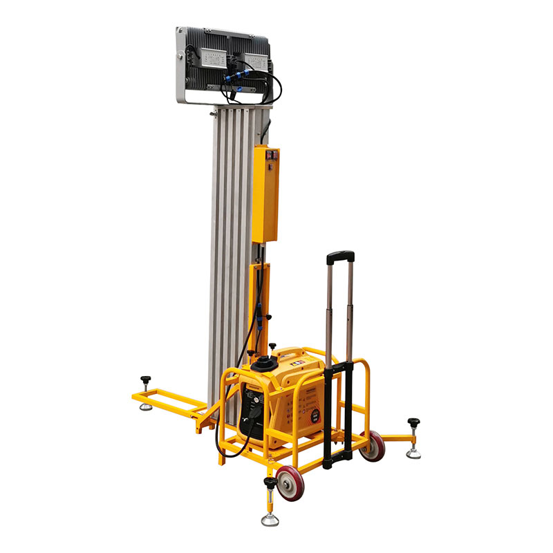 3. 升降平台采用电动推杆升降方式,一键控制升降及任意高度悬停,满足现场指挥操作的方便性;最高升起高度可达5.2米,灯头可上下0~135°范围内翻转调节照射角度。