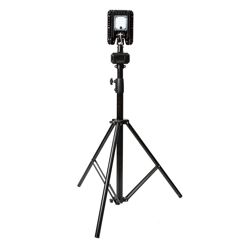 5. 灯头使用两节升降杆固定,1.20-2.24米高度范围内任意调节,并且可任意调节照射方向,升降杆和电池箱为一体式结构,使用方便灵活。