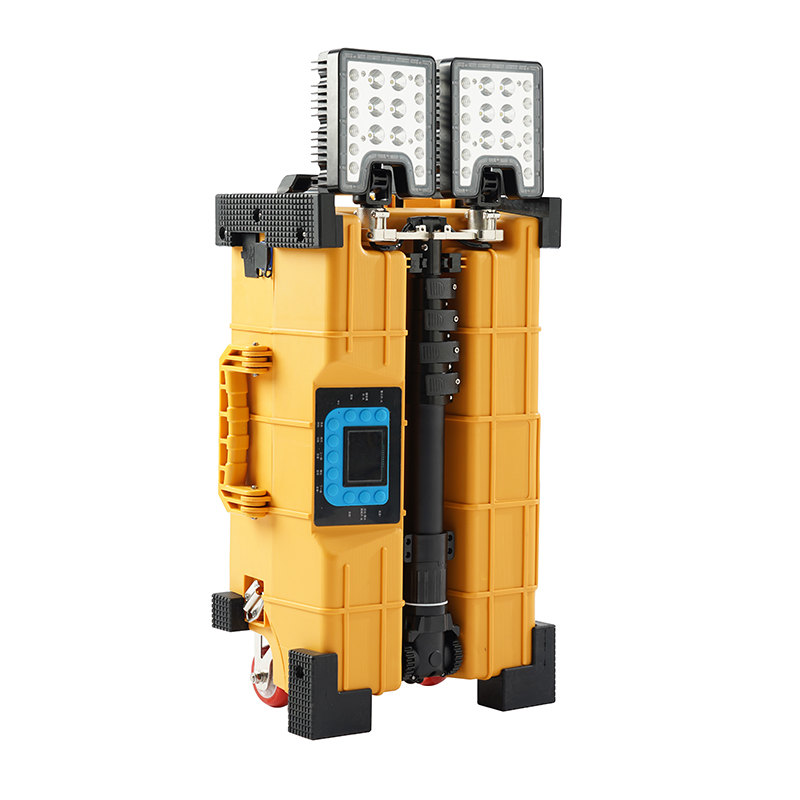 5. 灯具体积小、重量轻、一体化设计,可以实现拖行、手提、背行三种携带方式;灯头可折叠收起在灯具表面,不用拆卸灯头,省时省力;表面灯具底部安装了铁轨轮,便于用户在铁轨上拖行。