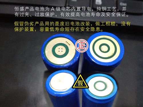 恒盛牌JW7623|JW7620佩戴式强光照明灯选用A级电芯,并加有过充过放保护装置。假冒伪劣JW7620佩戴式强光照明灯| JW7623多功能强光巡检工作灯选用废弃电池,并没有任何防护功能,有安全隐患。