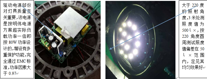 最大输出功率为50W的广角型LED防爆平台灯,所配置的电源为输出最大功率可达80W的电源,为灯具保持长期持久使用护航: