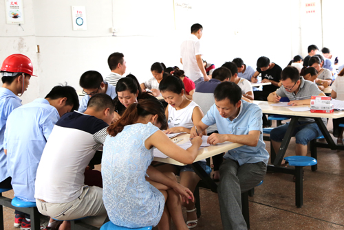 讲解完后发了知识培训考试卷,并要求必须百分百的通过考核。现场大家都很认真,最后都满分通过考核。
