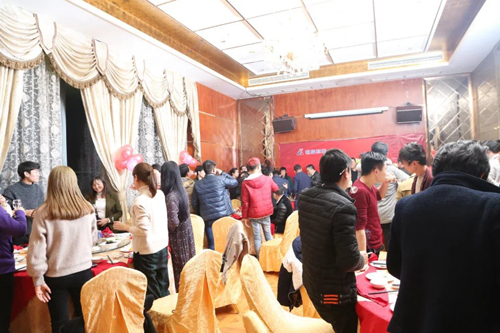 酒会现场气氛热烈,全体同事频频举杯相互敬酒,共贺新年。酒会现场还穿插了抽奖活动,抽中大奖的同事进行了丰富多彩的才艺展示。