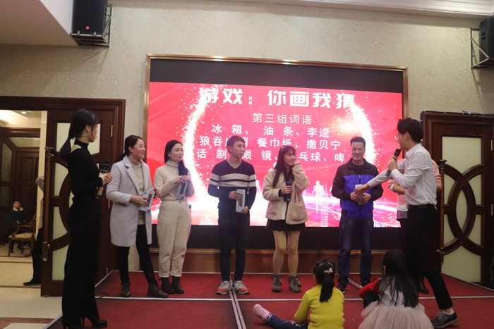 另外晚会还安排有唱歌,舞蹈,小游戏,等。全场一派欢歌笑语。