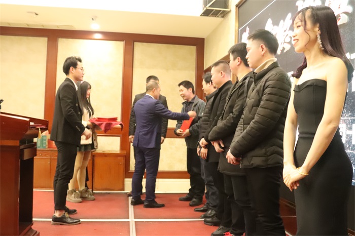 二、由彭斌总经理给获奖者颁发公司荣誉证书及詹百根副总经理颁发奖金仪式。本次颁发6个奖项分别为“最佳忠诚奖”“最佳责任奖”“最佳勤奋奖”“最佳效率奖”“最佳新人奖”“最佳节约奖”,所设奖项为生产部提名,生产部负责人詹百根副总经理给予获奖优秀员工工作的肯定与致辞!