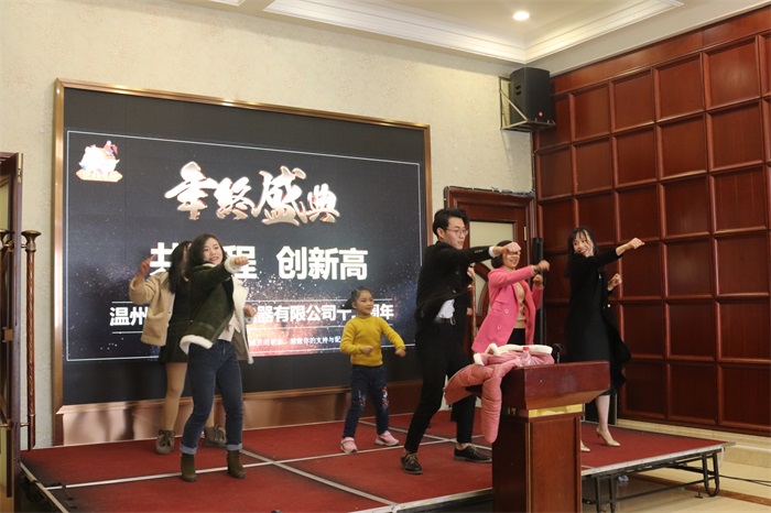 大会结束后,6点整喜迎分岁宴,欢喜迎新年!由市场部及采购部员工担纲主持。晚宴开始前,由表演者:詹贻旺 黄四娇 姚小敏 饶秋华 覃思慧 满益倩带来开场舞蹈“抓钱兔子舞”,为晚宴拉开了序幕。彭斌总经理、詹百根副总经理、车、冲床车间刘茂军、注塑车间刘庆为我们的表演者送上鸿运当头奖。并为晚宴送上了第一杯祝酒。