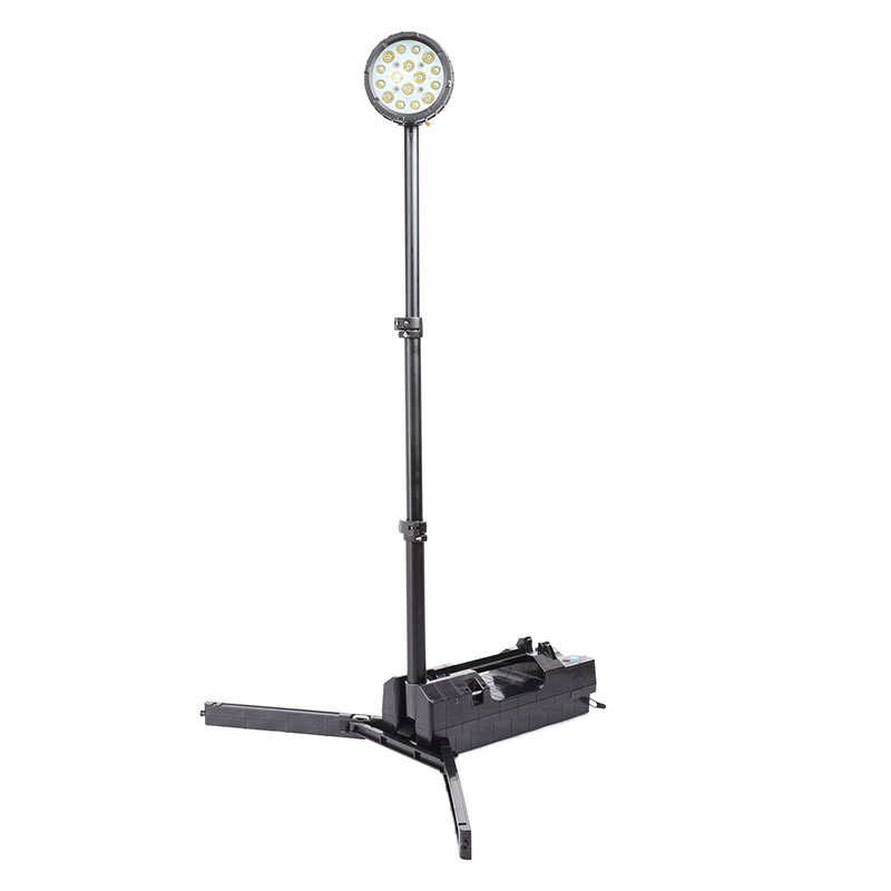 (2)多功能,升降杆的固定方式为快锁结构,可升高到1.2米作固定照明使用,亦可折叠作探照灯使用。