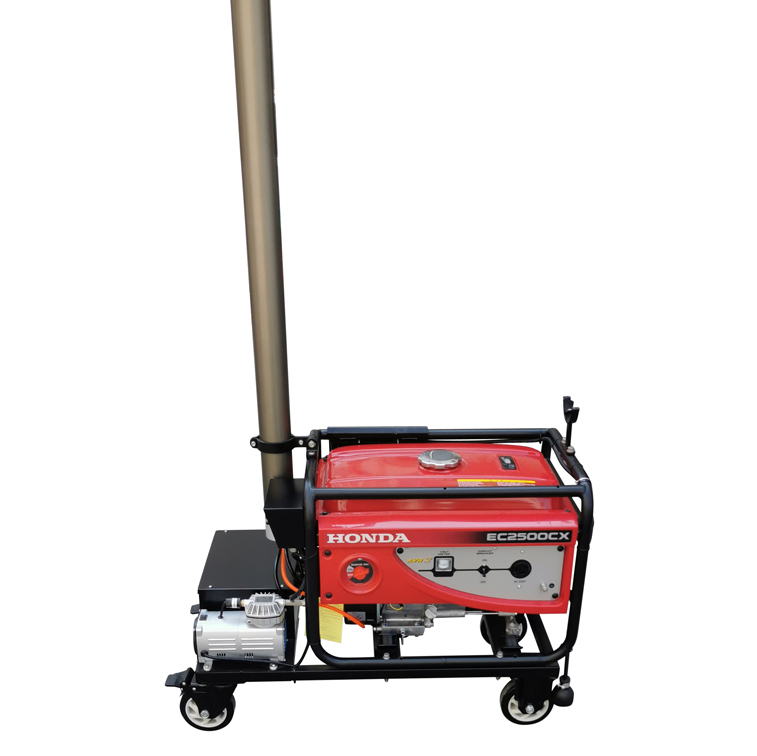 4.狭窄的地方能可靠固定;灯具灯盘、气缸和发电机组为整体结构,发电机组底部装有万向轮并可选配安装铁轨轮,可在坑洼不平的路面及铁轨上运行。