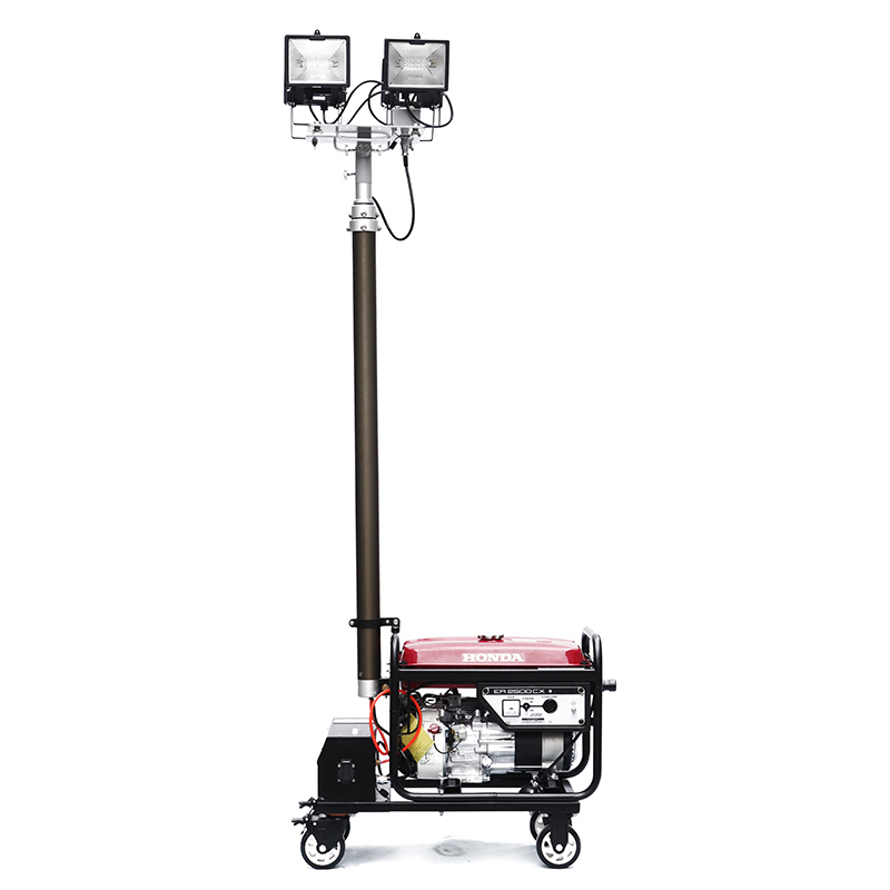 4. 狭窄的地方能可靠固定;灯具灯盘、气缸和发电机组为整体结构,发电机组底部装有万向轮并可选配安装铁轨轮,可在坑洼不平的路面及铁轨上运行。